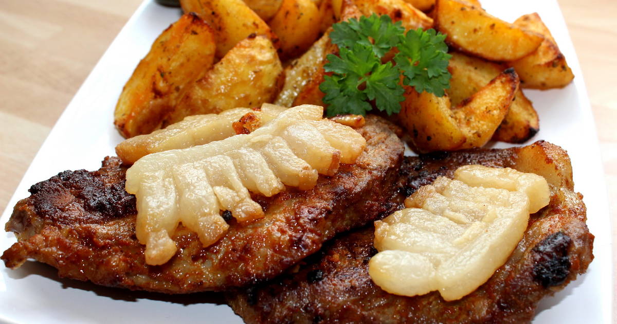 Gombával, hagymával, sonkával töltött sertéskaraj